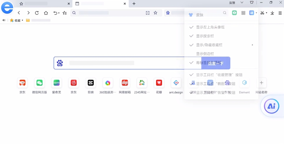 入口二:标签栏置顶时,点击工具栏上的网页恢复按钮