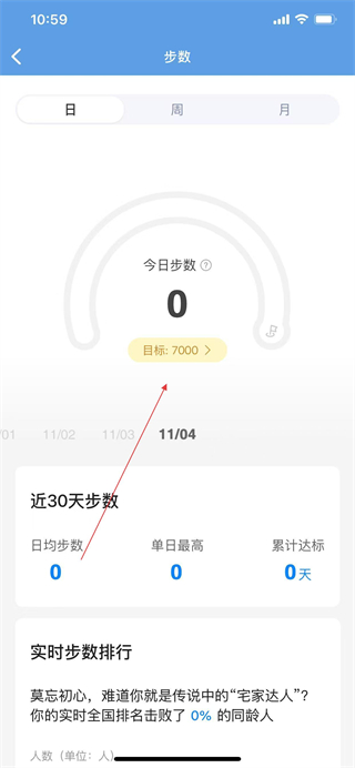 2、在步数页面点击目标:7000选项。
