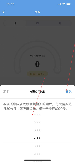 3、选择所需的步数目标,点击确认,即可修改。