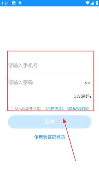 3、输入手机号、密码,勾选用户协议,点击登录,即可完成账号登录。