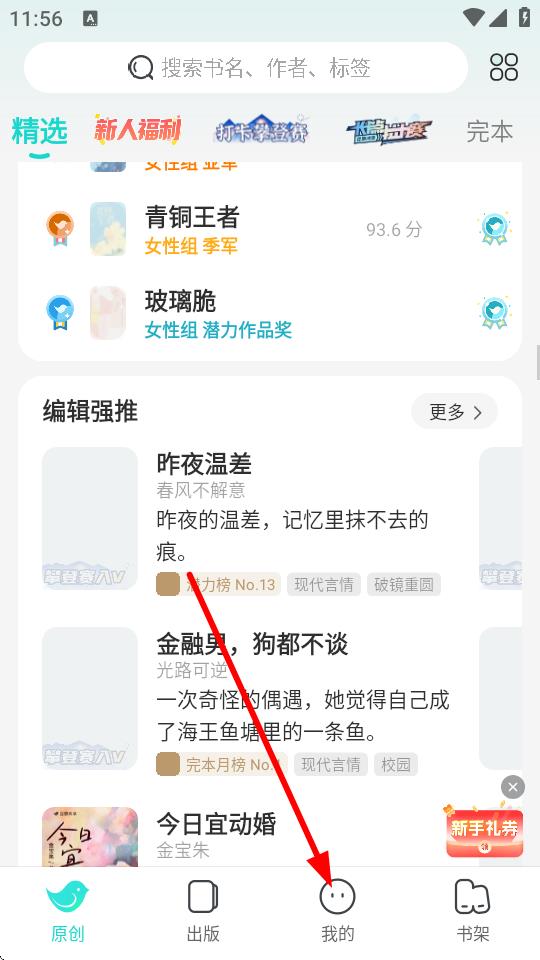 1、打开豆瓣阅读APP,点击底部导航栏中的我的选项。