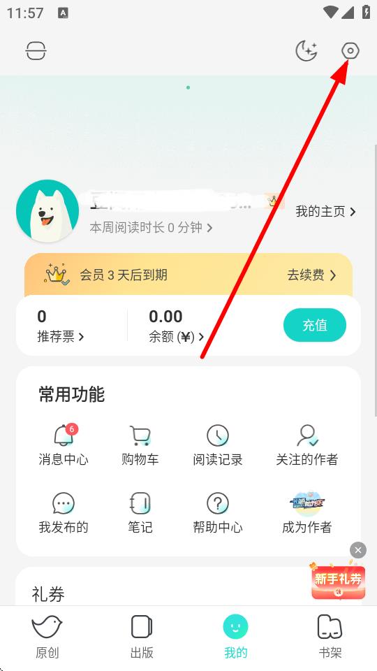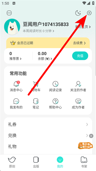 1、在豆瓣阅读我的页面,点击右上角设置图标,进入设置界面。
