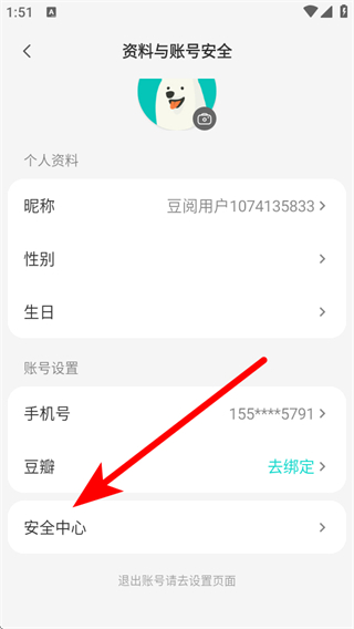 3、在资料与账号安全页面,点击安全中心选项,进入安全中心界面。