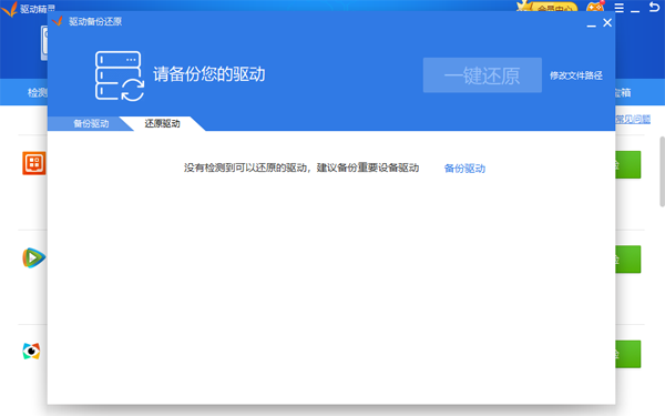 驱动还原一键完成通过驱动精灵备份的自安装驱动程序可自动完成驱动安装过程,双击即可完成硬件驱动安装。当然,你也可以通过驱动精灵的驱动还原管理界面进行驱动程序还原。