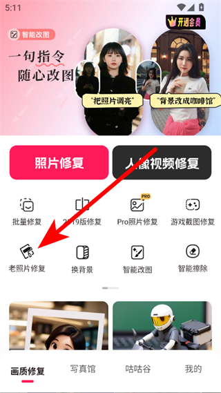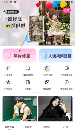 1、打开你我当年APP,进入首页后点击照片修复选项。