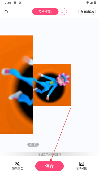 4、处理完成后,在历史记录中查看修复效果,预览满意后点击保存。