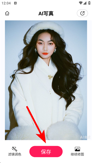 4、等待AI合成完成后,点击保存按钮,即可保存制作好的AI写真。