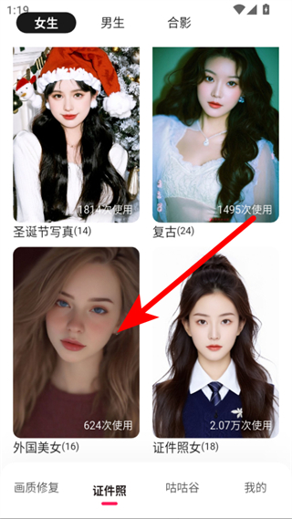 2、在证件照页面中,选择你想要使用的证件照模板,如外国美女16模板。