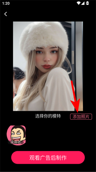 4、选择模版后,点击添加照片按钮,添加你想要制作证件照的照片,再点击观看广告后制作按钮,即可生成证件照。