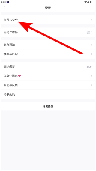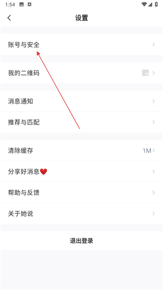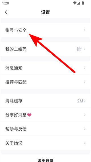 3.进入设置界面后,点击账号与安全选项。