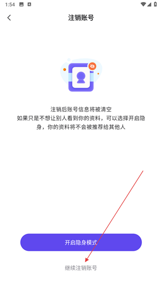 4、进入注销页面后点击继续注销账号。