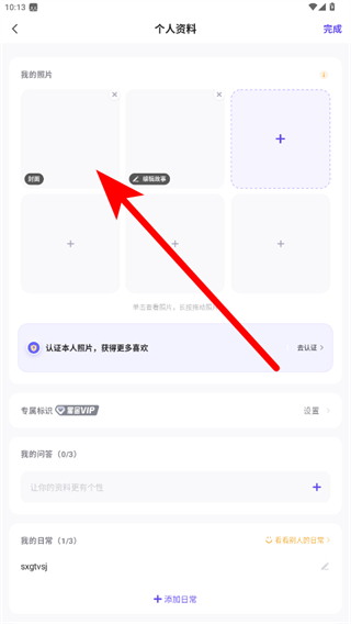 3、进入个人资料页面后,点击我的照片区域中的头像位置。