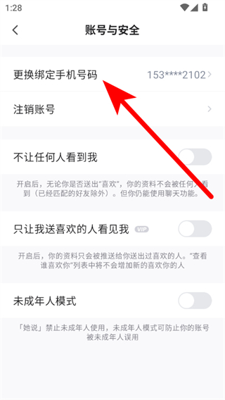 4、在账号与安全页面中找到更换绑定手机号码选项并点击,按照提示完成手机号码的更换操作。