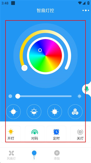 3、添加后,点击底部的RGB灯设备图标,进入RGB灯控制界面。