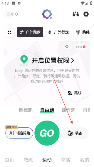 1、打开Keep APP,在运动页面点击右上角的设置图标,进入跑步设置页面。