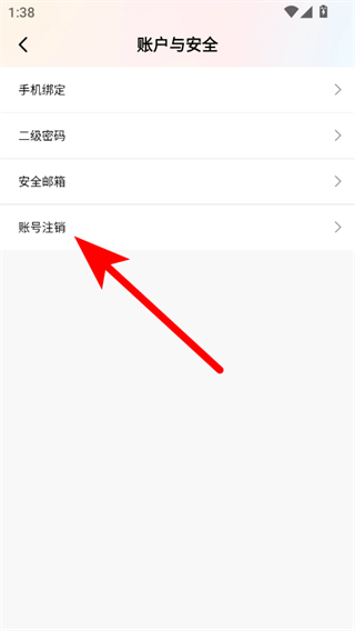 4、在账户与安全页面中找到账号注销选项并点击,按照页面提示完成验证等操作即可注销棉花糖直播账号。
