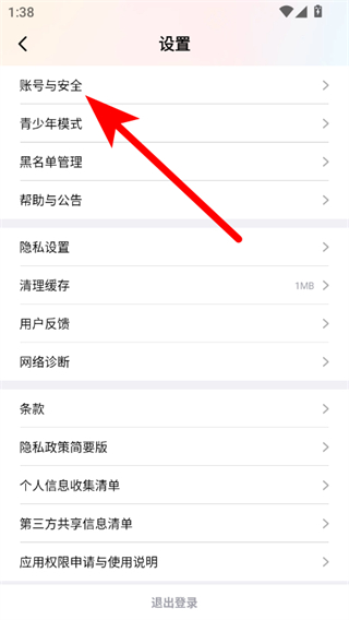 3、在设置页面中找到账号与安全选项并点击,进入账户与安全相关功能页面。