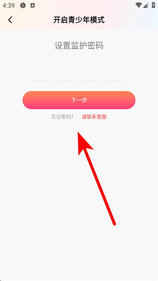 4、进入设置监护密码页面,设置监护密码后点击下一步,即可完成棉花糖直播APP青少年模式密码的设置。