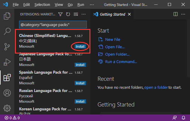 等待一会就安装成功了,右下角会有“Would you like to change VS Code’s UI language to Chinese Simplified and restart?”的提示,询问你是否切换成中文,选择下面的“Change Language and Restart