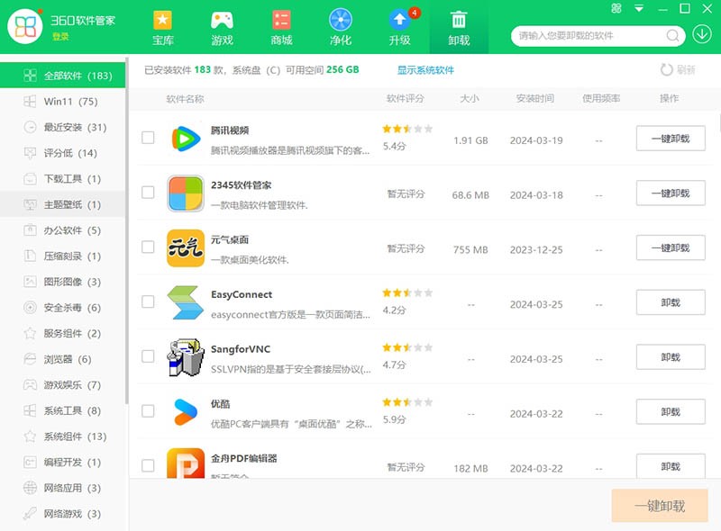 360软件管家电脑版是一款可以让用户在电脑上对自己的软件进行管理的软件,该软件拥有着众多的功能,如可以在软件上下载各式各样的软件应用、又或者可以对电脑进行病毒查杀、文件清理等,着些功能可以方便你的使用,也可以提高你的电脑运行速度。