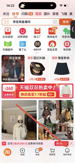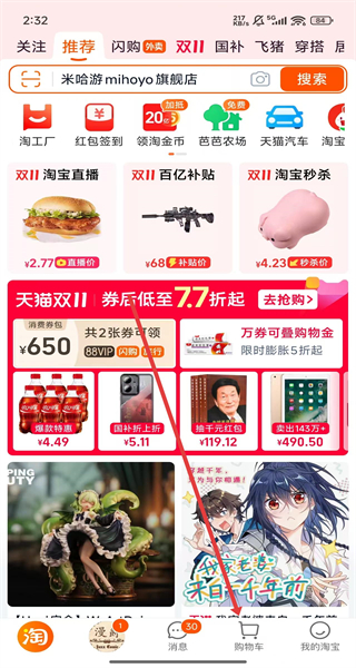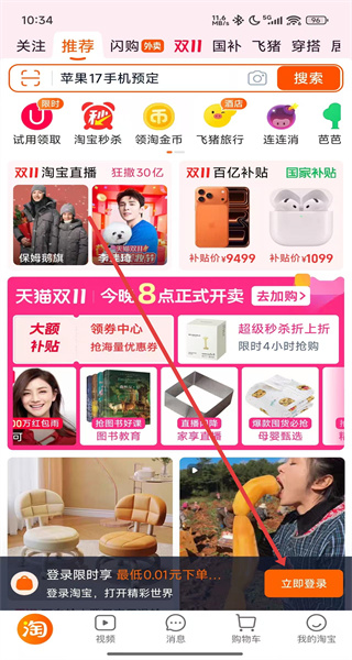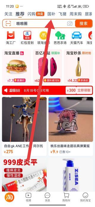 1、在淘宝首页点击国补标签,进入国家补贴商品专区,浏览各类享受补贴的商品信息。