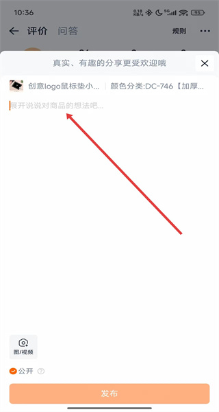 4、点击追评后,在弹出的输入框中,输入对该商品的想法、使用感受等内容,为发布追评做准备。