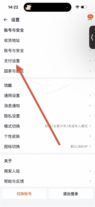 3、在设置界面,点击支付设置选项,进入支付设置页面。