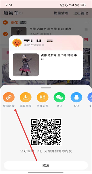 3、在勾选商品后,可以点击分享按钮,进行分享操作。