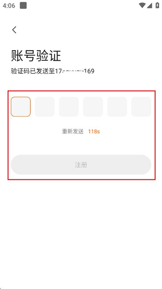 4、在账号验证界面,输入收到的验证码,完成注册流程。