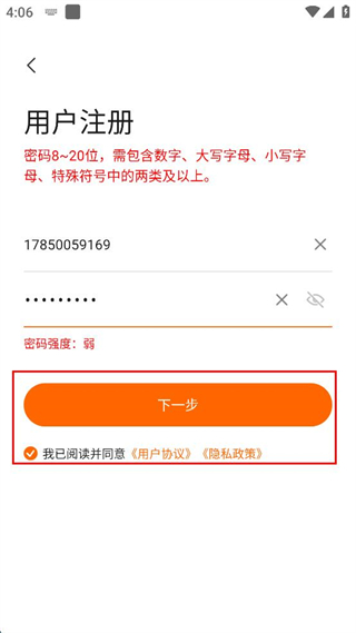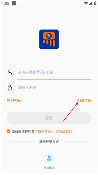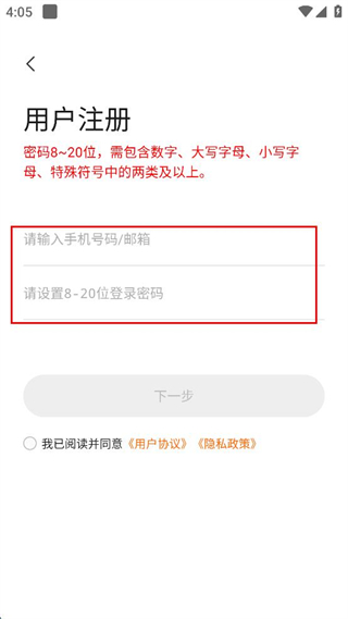 2、输入手机号码/邮箱和登录密码,勾选同意用户协议和隐私政策。