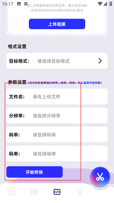 4、继续向下滑动,可以看到最新的转换分辨率,这些都能自动生成,点击【开始转换】如下图所示;