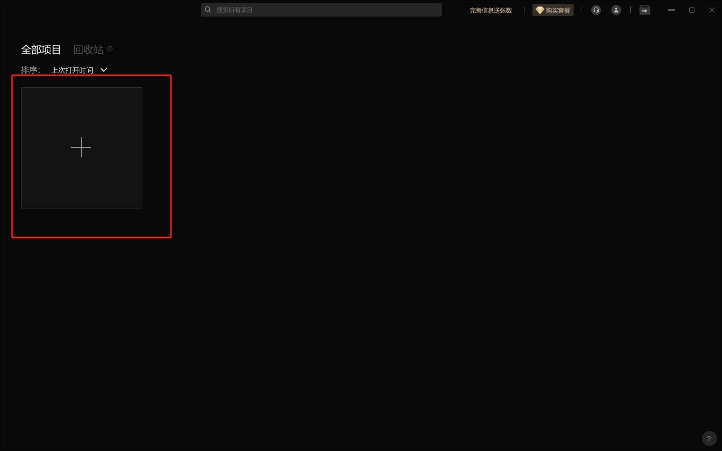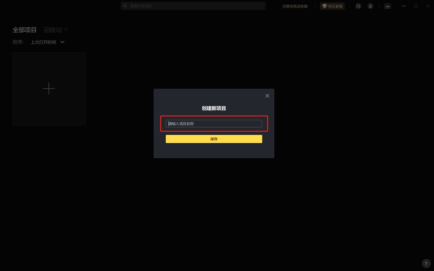 1、首先先注册登录软件后,进入软件可以看到在全部项目中点击这个+号新建项目;
