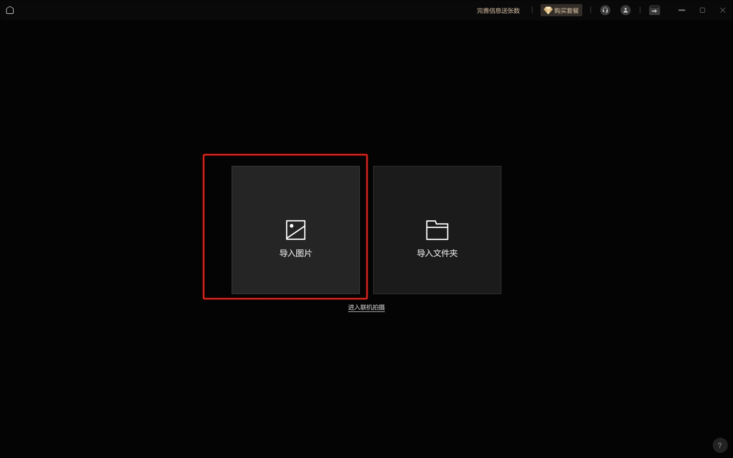 3、接着我们直接点击导入图片,在电脑中找寻到自己需要修图编辑的图片直接导入到软件中;