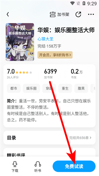 2、在书籍详情页面,点击免费试读按钮,进入书籍阅读页面。