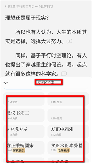 5、选择更多字体,即可选择字体,完成QQ阅读字体修改任务。