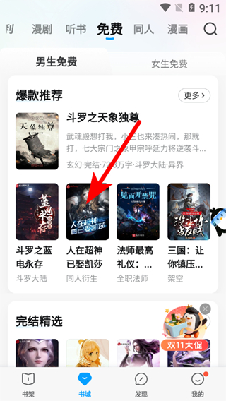 1、在QQ阅读书城页面,点击想要修改字体的书籍,进入书籍详情页面。