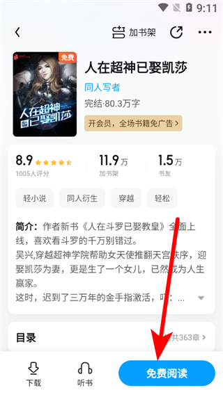 2、在书籍详情页,点击免费阅读,进入书籍阅读界面。