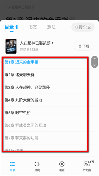 4、在目录界面,即可查看书籍各章节列表,完成目录查看操作。