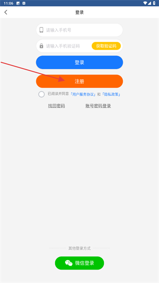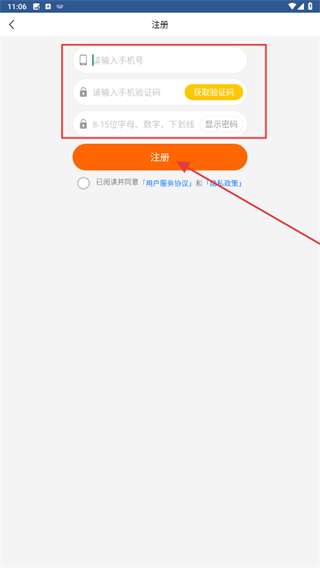 4、输入手机号、验证码以及密码后,点击注册按钮即可。
