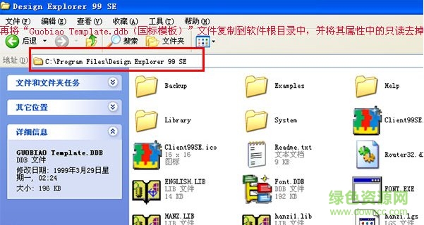 5、再将“Guobiao Template.ddb(国标模板)”文件复制到Design Explorer 99 se 根目录中,并将其属性中的只读去掉。