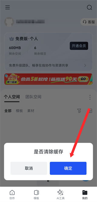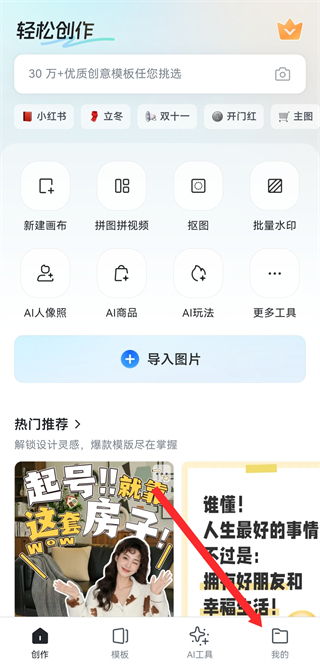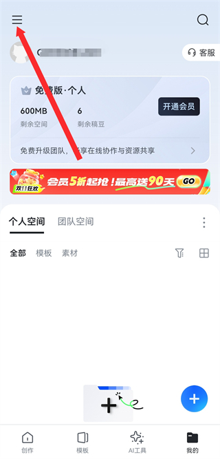 1、打开稿定设计APP,点击右下角我的,进入个人页面。