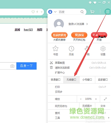 一、uc浏览器电脑版怎么设置无痕浏览?