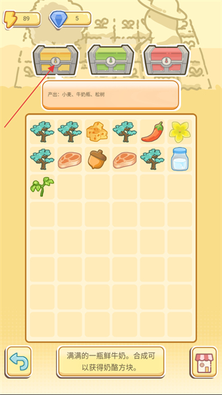 2、上方的宝箱可以开出相对应的合成物,可以在宝箱下方看见具体信息。