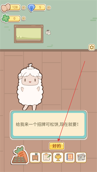 3、有顾客进店时,根据顾客的描述和要求进行接单,点击好的按钮为小羊进行制作。