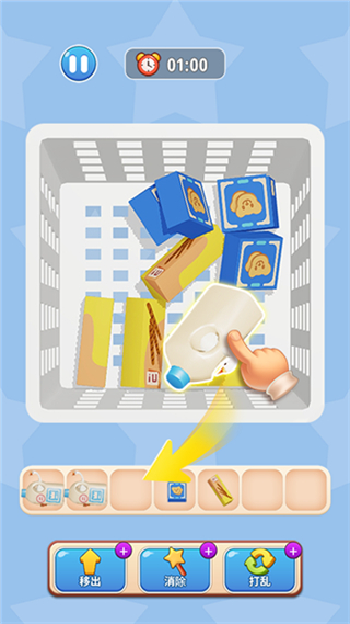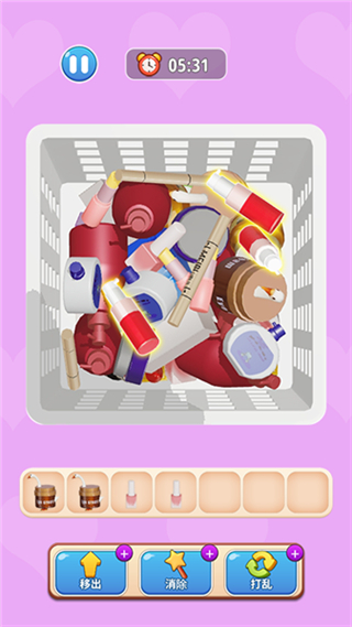 4、持续收集消除物品,待关卡内所有堆叠物品清理完毕,收获胜利。