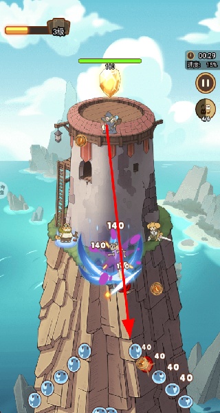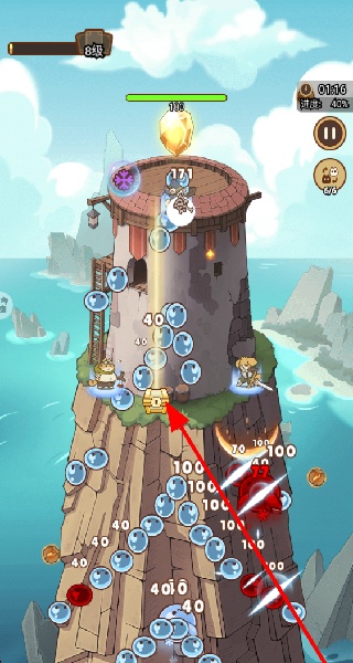 4、拾取场景中的宝箱,获得装备,提升英雄的战斗力,增强塔的防守能力,顺利通过塔防关卡。