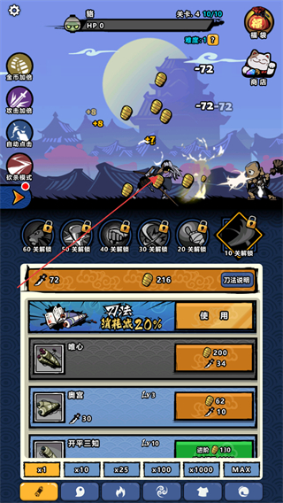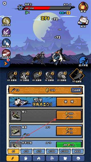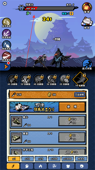 3、关注角色的生命值HP,合理分配资源升级属性,确保能击败更强的妖怪。