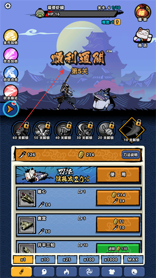 1、在战斗中,点击屏幕上的妖怪进行攻击,击败妖怪可获得金币和经验。