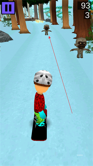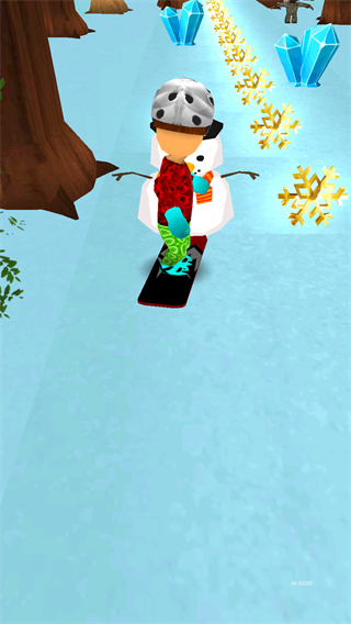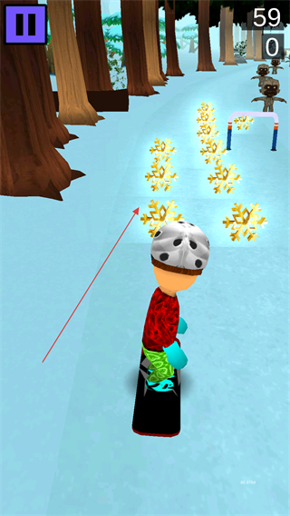 1、操控角色在雪地赛道滑行,躲避树木、石块等障碍,收集沿途物品。