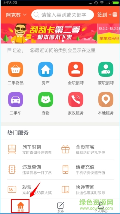 三、进入首页后可看到生活信息服务,主要包括二手物品、房产、招聘、二手车、宠物、家政服务等信息。